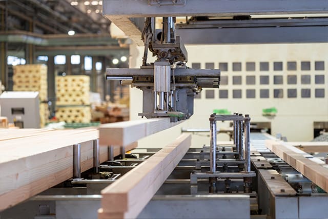 山林事業を起点に、製材事業、プレカット事業へとつながる事業構成を築いています。 森林の管理から木材の加工、建材として使われるその先までを一体で考えることで、安定した供給と需要の創出を実現しています。 川上から川下まで携わる体制は、木材の価値を最大限に引き出し、無駄のない資源活用につながります。木が使われることで林業が成り立ち、森林管理が継続される。 その循環を生み出すことが、私たちの事業の根幹です。