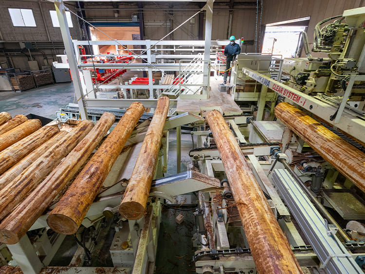 製材事業は、森林と建築をつなぐ重要な役割を担っています。 安定した製材・供給体制があることで、木材の需要が生まれ、林業が継続的な産業として成り立ちます。 その結果、森林管理や植林が行われ、健全な森林資源の循環が維持されていきます。 私たちは、木を「使う側」の視点だけでなく、「育てる側」ともつながりながら、製材を通じて循環型林業を支えています。 製材事業は、森林資源を未来へつなぐための、欠かせない要となる存在です。