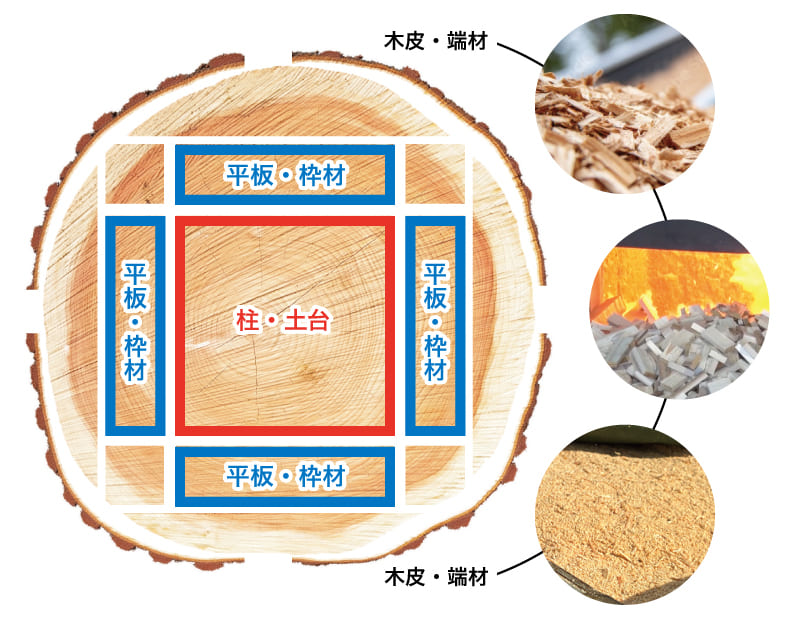 周囲部は枠材や平板に加工し、内装・下地材として有効活用